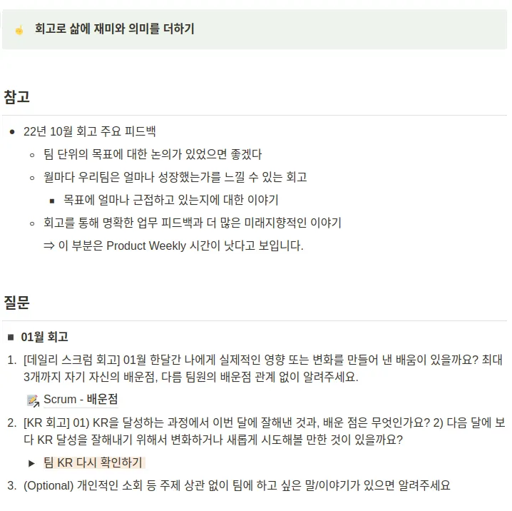 매주 발전하는 회의로 팀에서 가장 집중해서 다루는 루틴입니다.